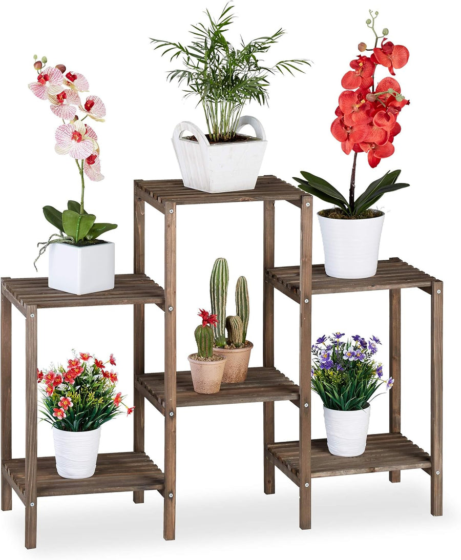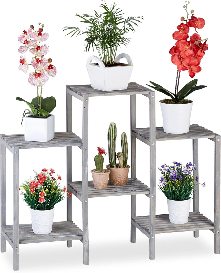 Relaxdays Blumentreppe Holz, Shabby, Innenbereich, Wohnzimmer, Pflanzenregal stehend, 6 Ablagen, HBT