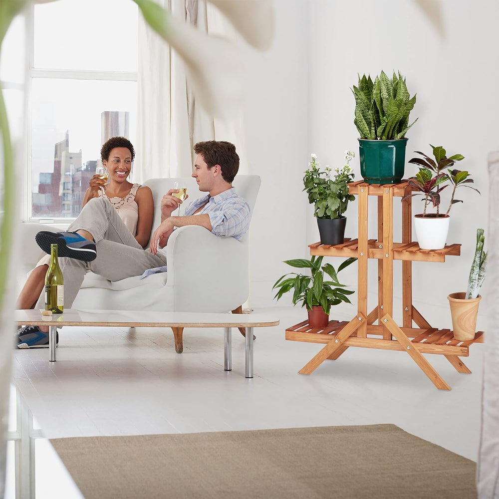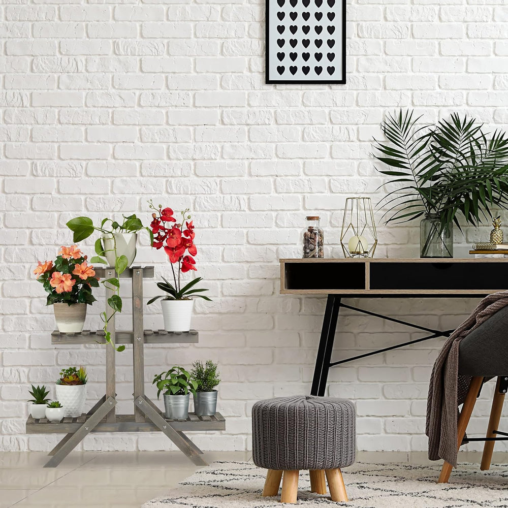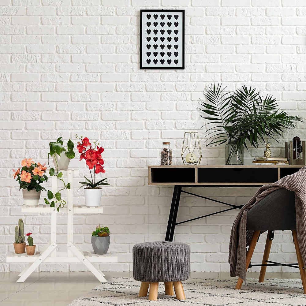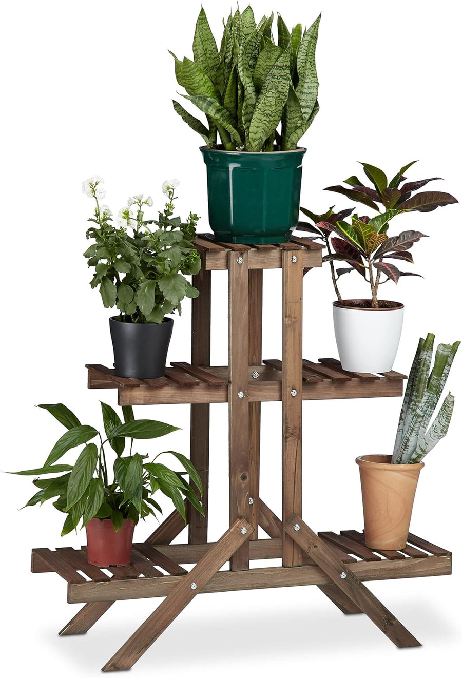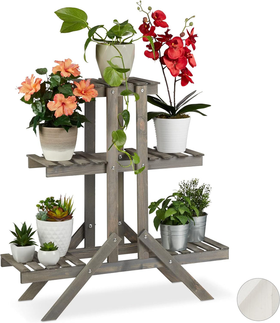 Relaxdays Blumentreppe 3 Ebenen, Aus Holz, Blumenständer für innen, Mehrstöckig, HBT: ca. 82,5 x 83