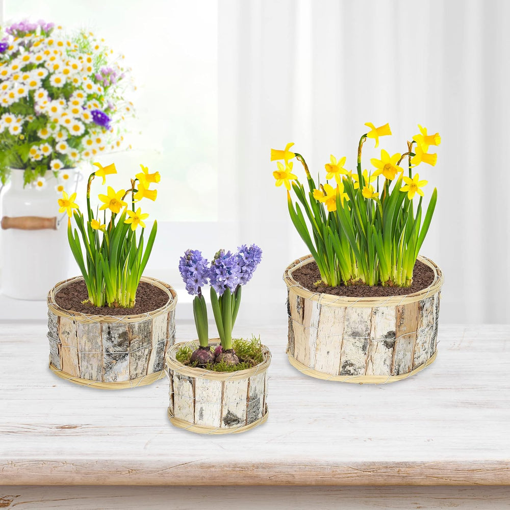 Relaxdays Blumentopf, 3er Set, rundes Design, Birke, mit Folienauskleidung, Pflanzkörbe für innen un