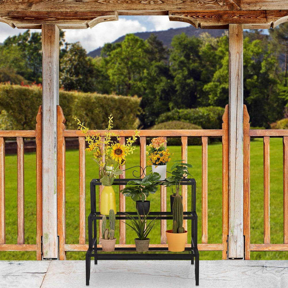 Relaxdays Blumentreppe Metall, 3 Stufen, Outdoor und Indoor, Pflanzentreppe mit Verzierung, HBT 69 x