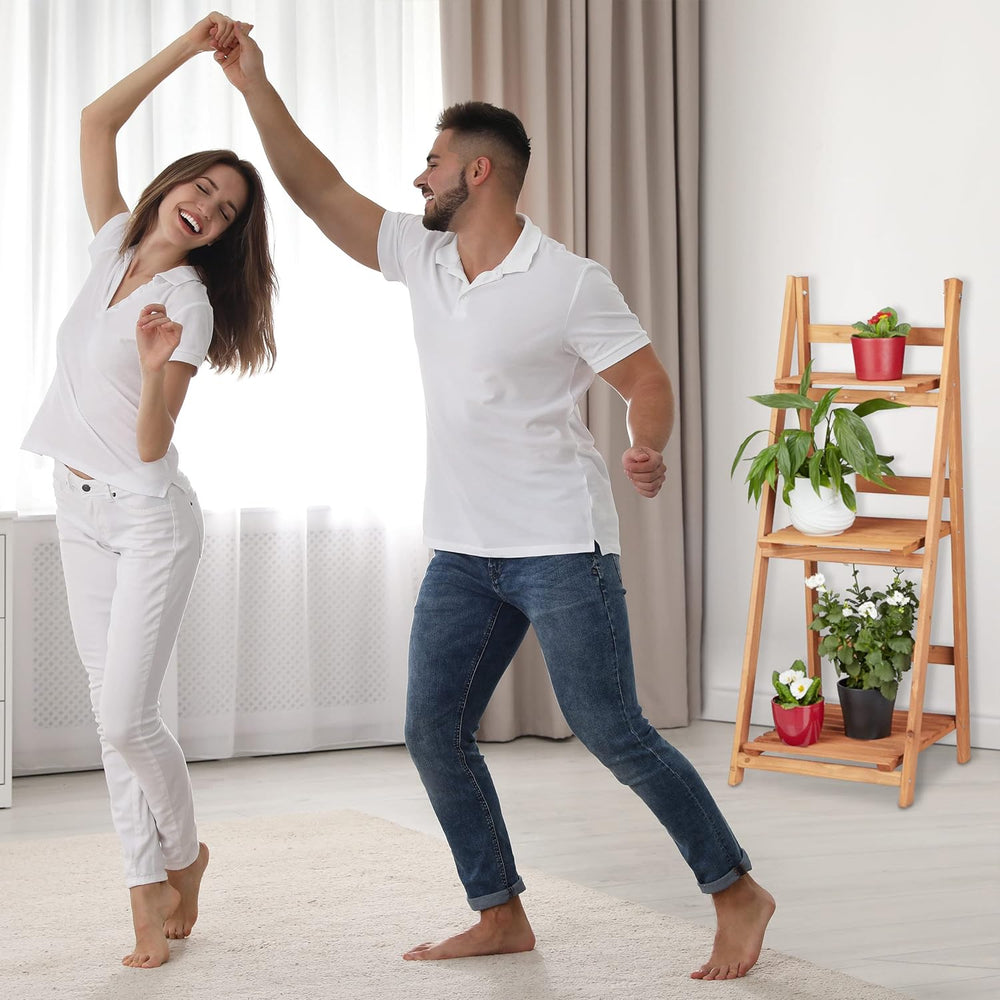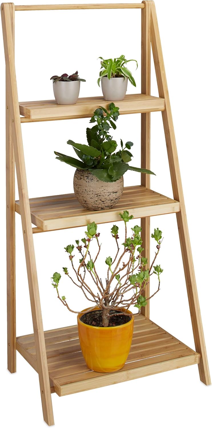Relaxdays Blumentreppe innen, 3 Stufen, Bambus, klappbar, Leiterregal, Pflanzenregal, H x B x T 99 x