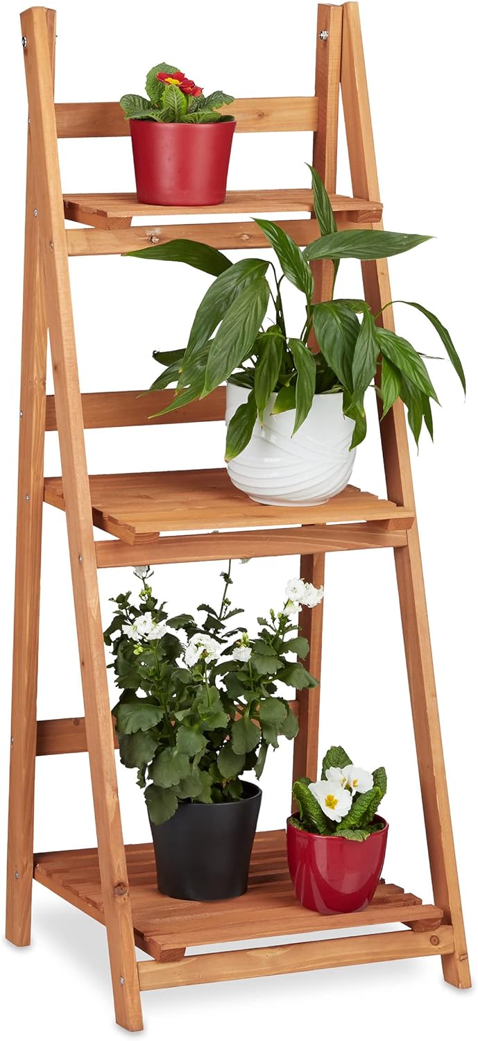 Relaxdays Blumentreppe, 3-stufig, Blumenleiter Holz, klappbar, Leiterregal Pflanzen, HBT: 108 x 41 x