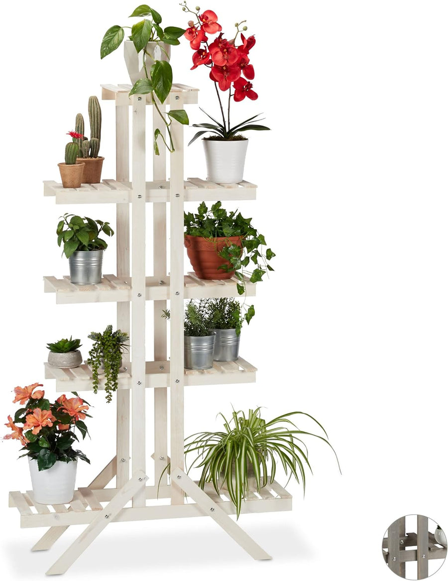 Relaxdays Blumentreppe Holz, Shabby, Innenbereich, Wohnzimmer, Pflanzenregal stehend, 7 Ablagen, HBT