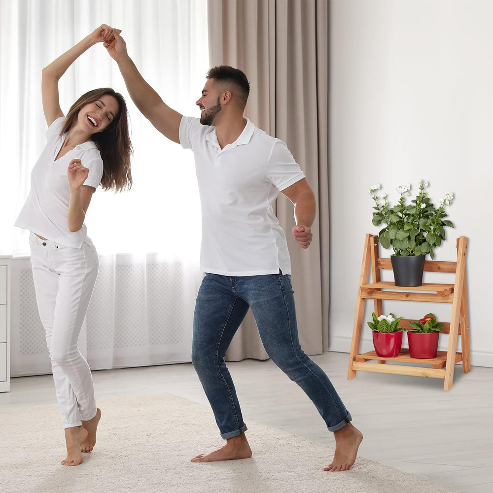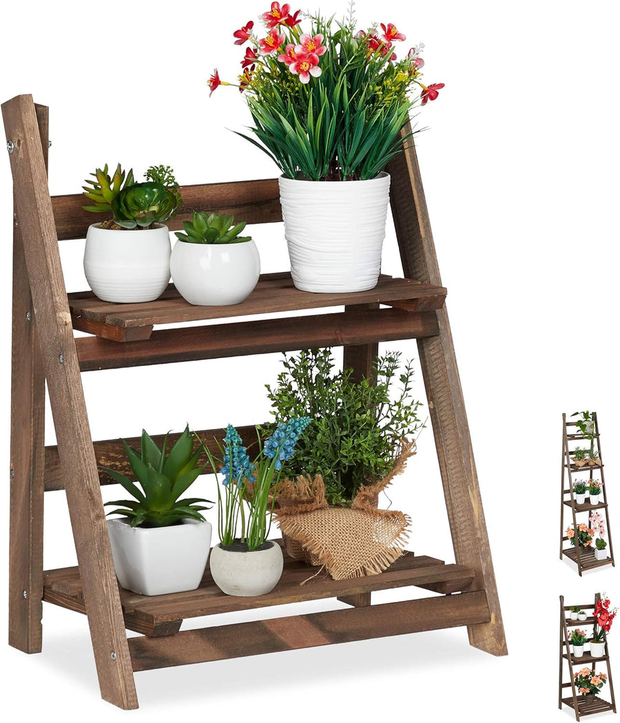 Relaxdays Blumentreppe aus Holz, Blumenständer für innen, 2-stufig, Leiterregal, Klappbar, HBT: ca.