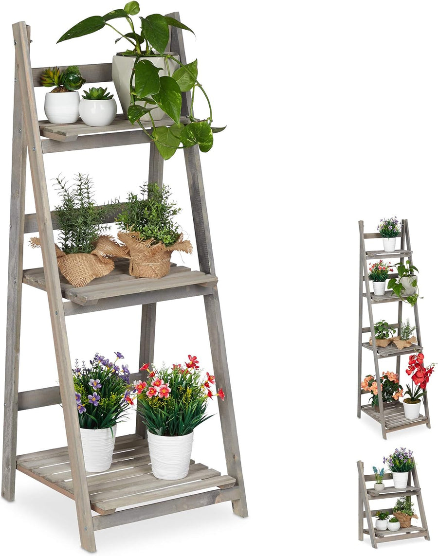Relaxdays Blumentreppe aus Holz, Blumenständer für innen, 3-stufig, Leiterregal, Klappbar, HBT: ca.