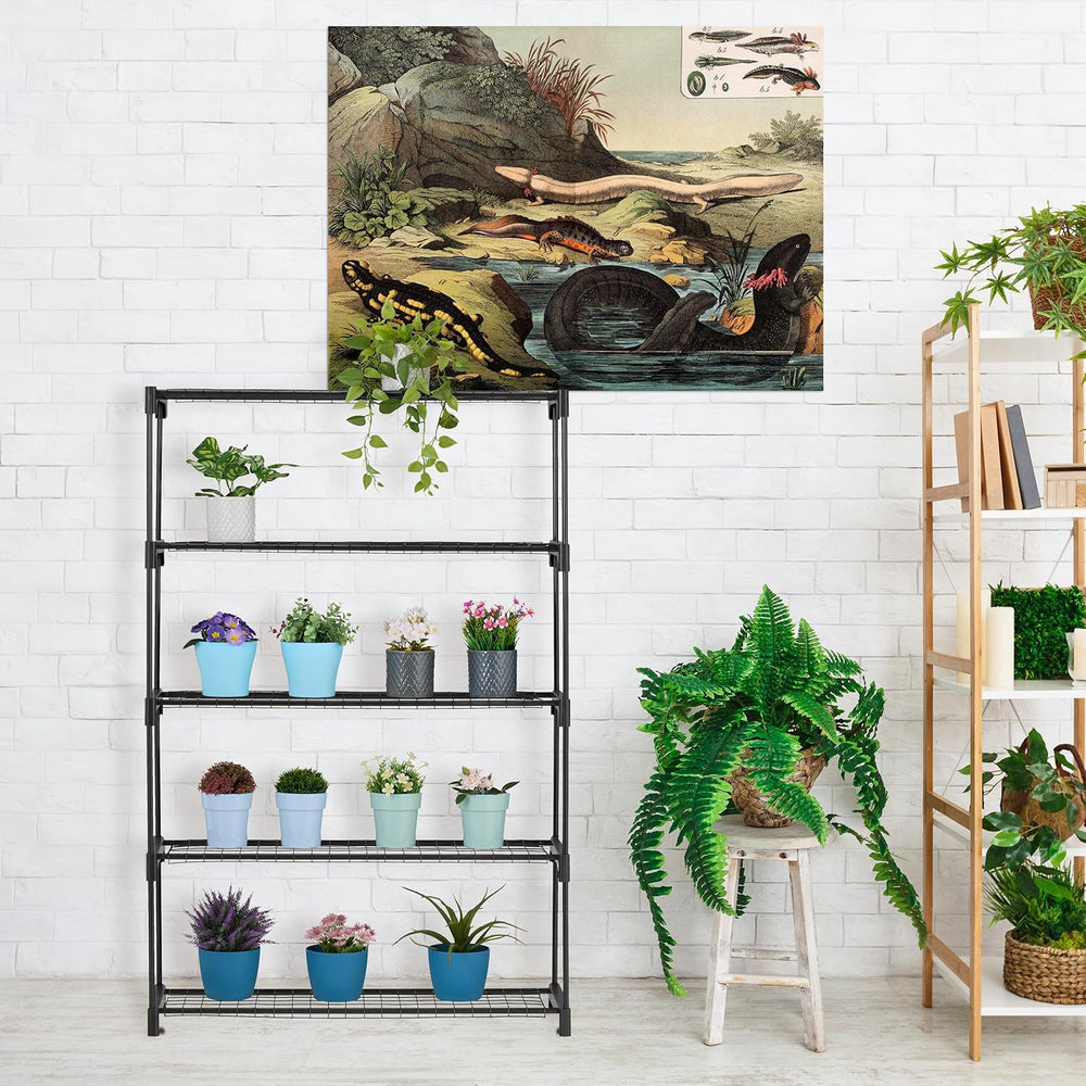 Relaxdays Blumenregal, 5 Ablagen, Blumen- & Pflanzentöpfe, Metall & Kunststoff, HBT: 140x91x28 cm, K
