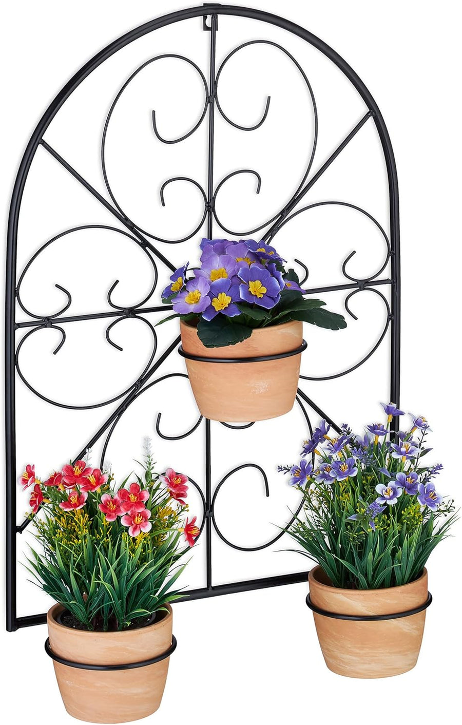 Relaxdays Blumentopfhalter, für 3 Blumentöpfe Ø 11,5 cm, Wand Topfhalter, Metall, Retro Blumentopfha