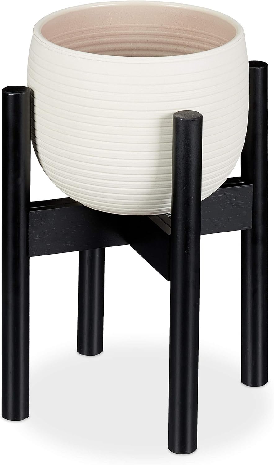 Relaxdays Blumenständer Bambus, individuell verstellbar, für Blumentöpfe bis 32 cm, Pflanzenständer,