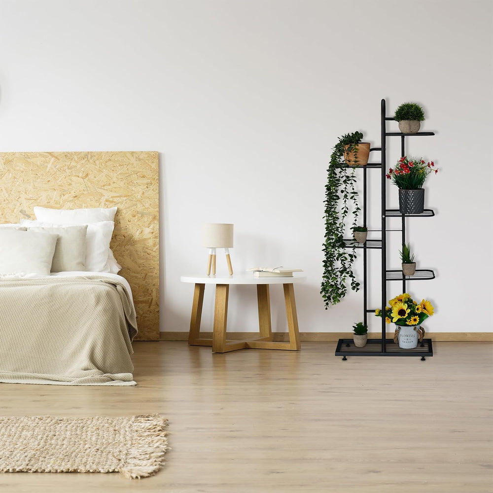 Relaxdays Blumenregal, 6 Ablagen für bis zu 7 Blumen- & Pflanzentöpfe, Metall, Pflanzentreppe, 109,5