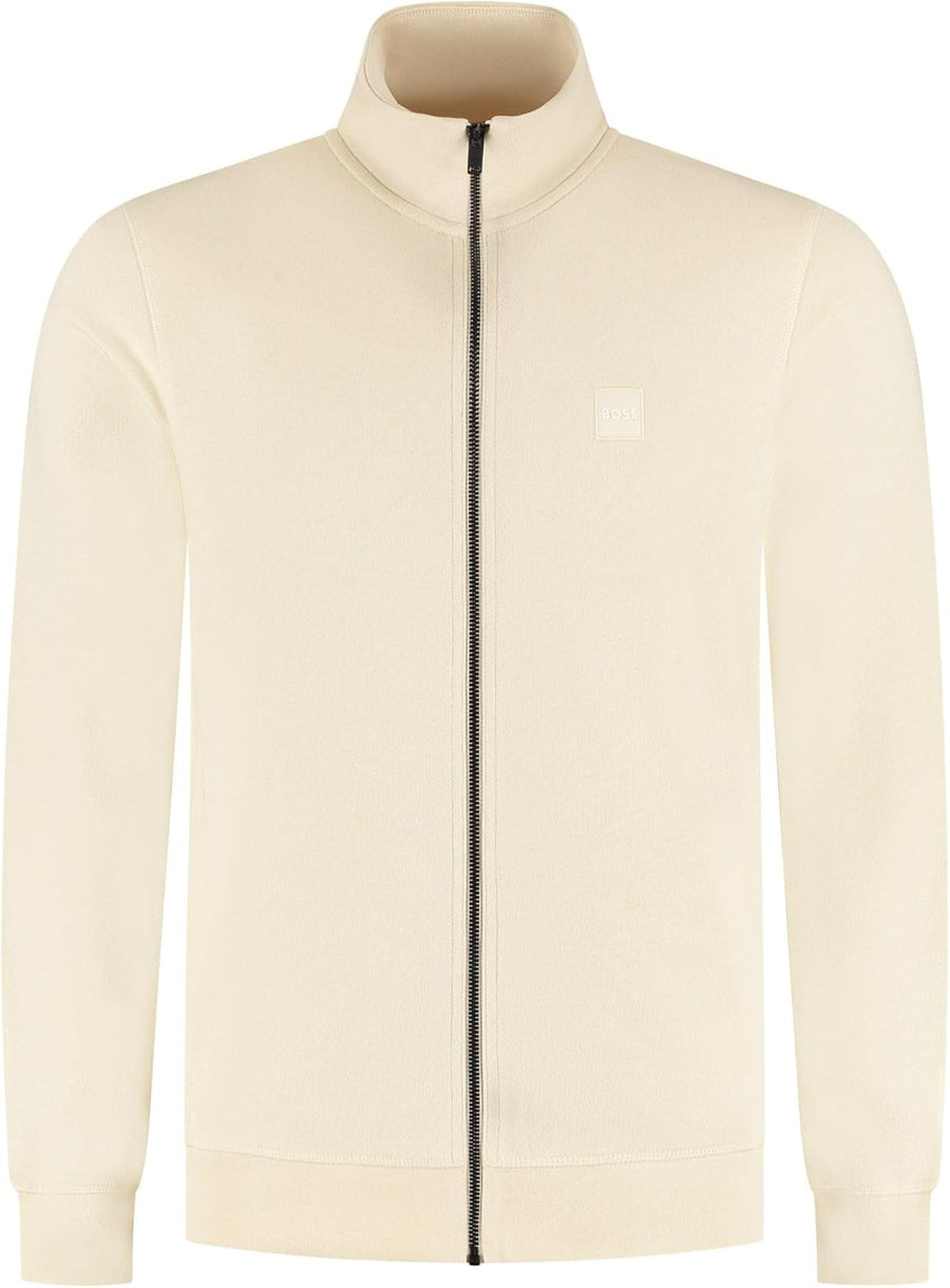 BOSS Herren Zestart Jacke aus Baumwoll-Terry mit Reissverschluss und Logo-Aufnäher, Light Beige