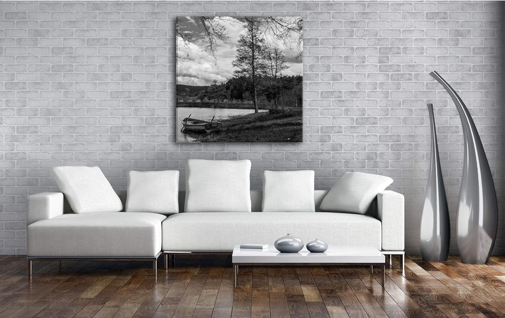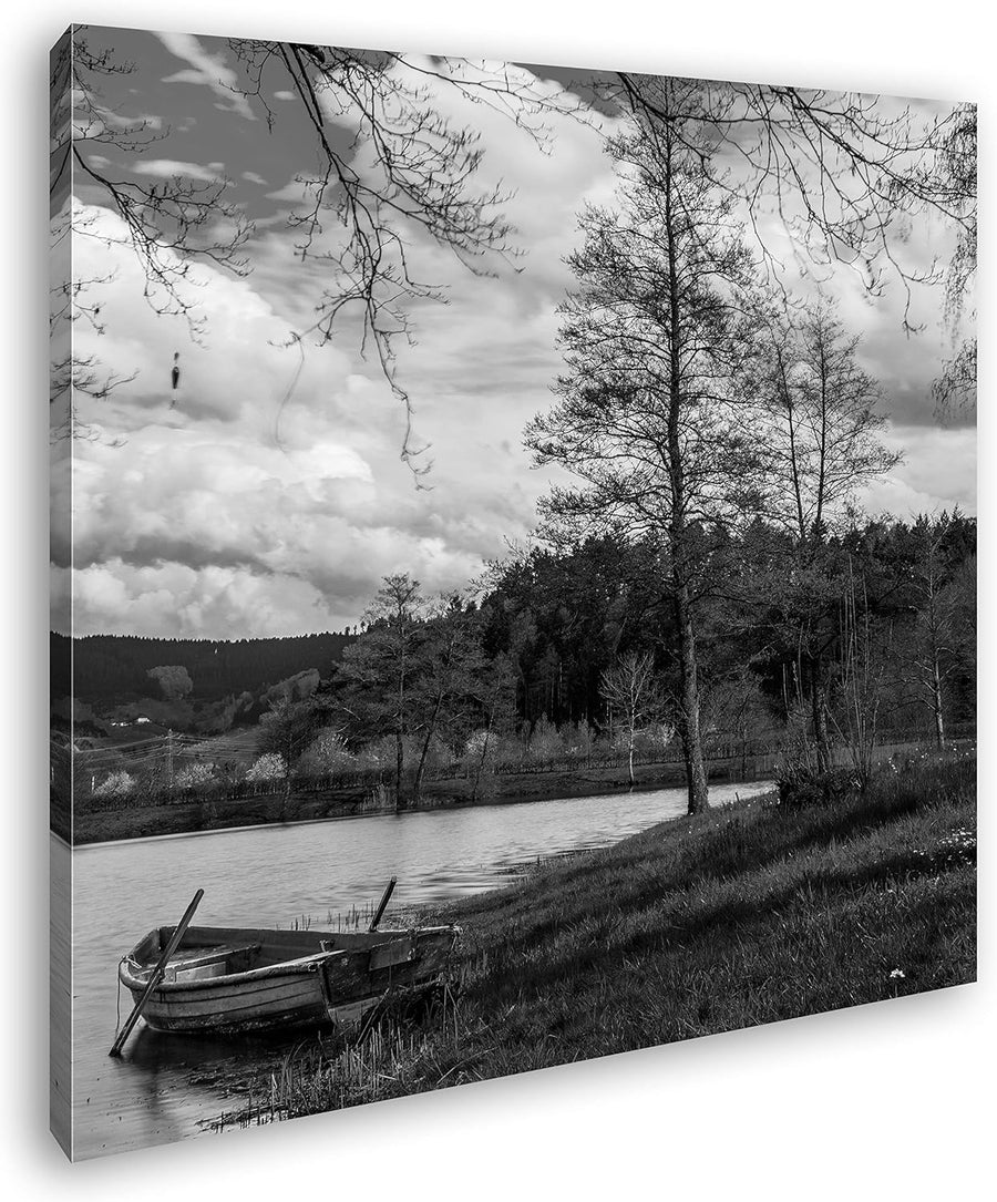 deyoli Boot am Ufer des Schwarzwaldes Format: 60x60 Effekt: Schwarz&Weiss als Leinwandbild, Motiv au