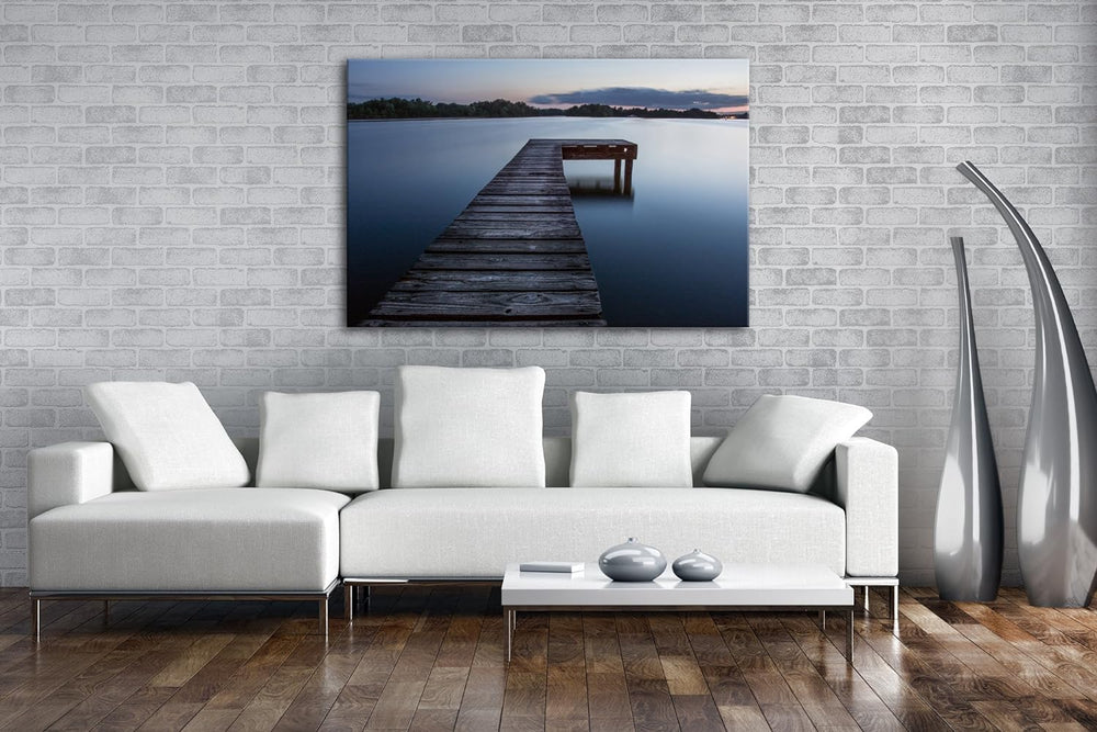deyoli Bootssteg am ruhigem See Format: 100x70 als Leinwand, Motiv fertig gerahmt auf Echtholzrahmen