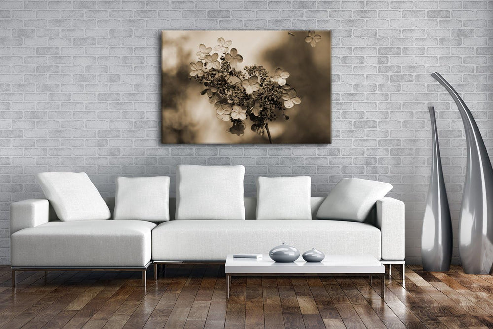 deyoli blühende Hortensien im Herbst Format: 80x60 Effekt: Sepia als Leinwandbild, Motiv fertig gera