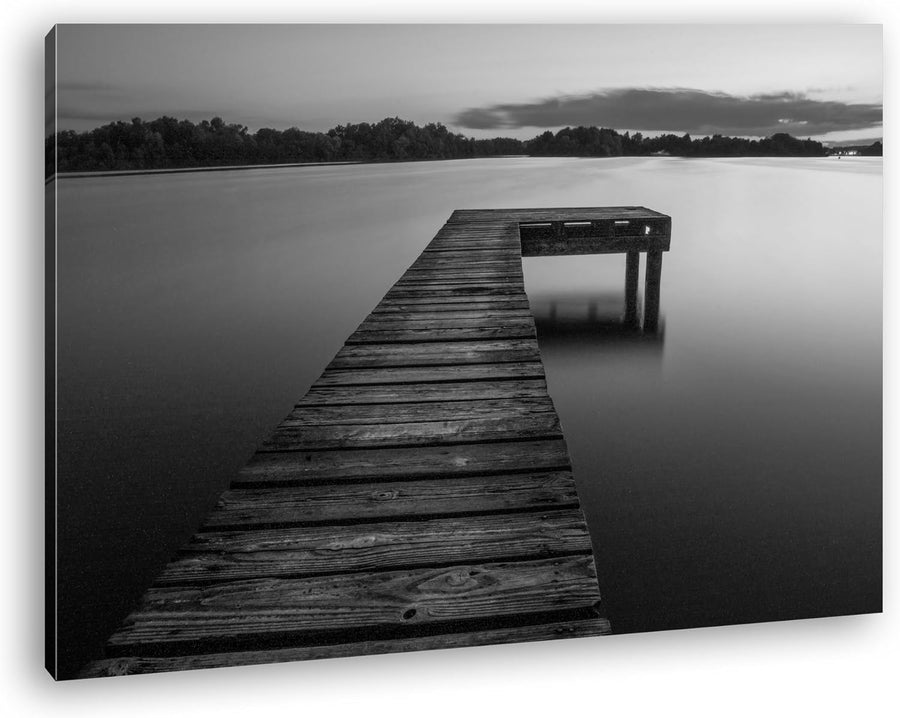 deyoli Bootssteg am ruhigem See Effekt: Schwarz/Weiss Format: 60x40 als Leinwand, Motiv fertig gerah