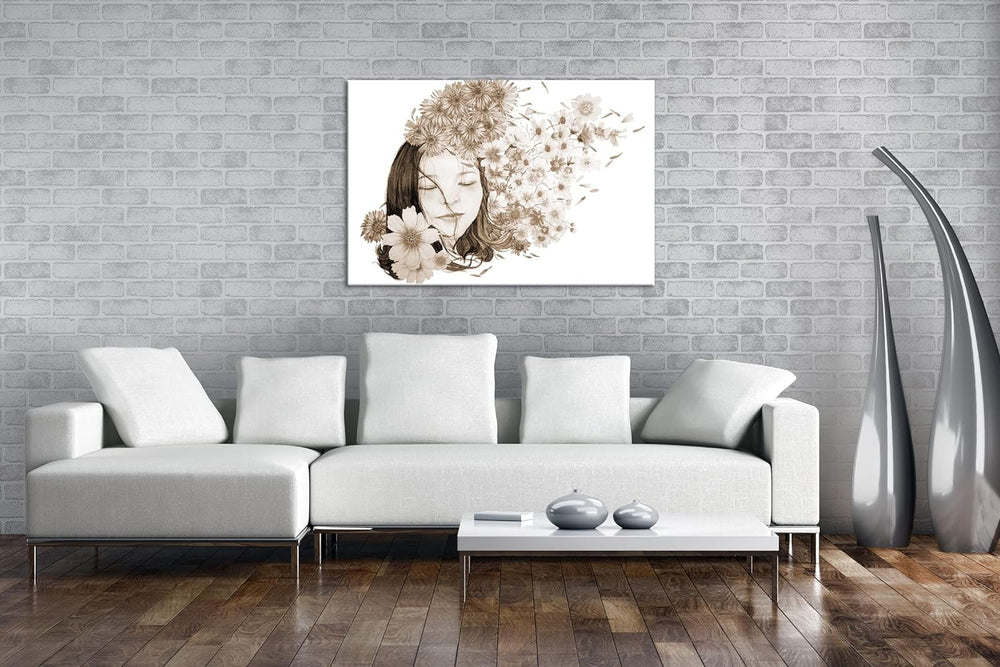 deyoli Blumenmädchen Format: 80x60 Effekt: Sepia als Leinwandbild, Motiv fertig gerahmt auf Echtholz