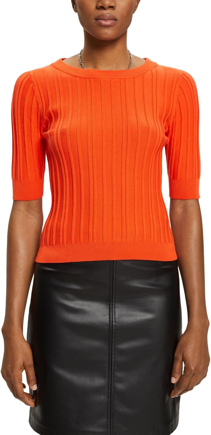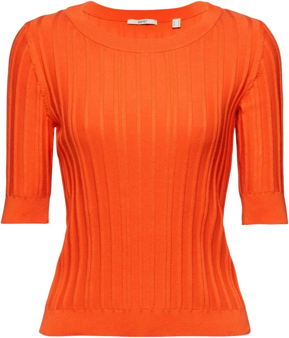 ESPRIT Gerippter Kurzarm-Pullover XXS Orange Red, XXS Orange Red