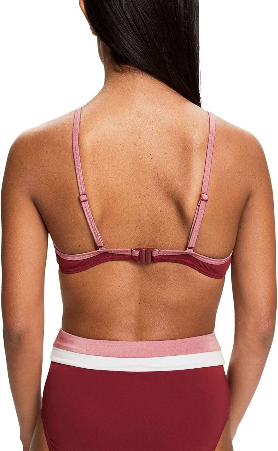 ESPRIT Dreifarbiges, wattiertes Bikinioberteil mit Bügeln B Dark Red, B Dark Red