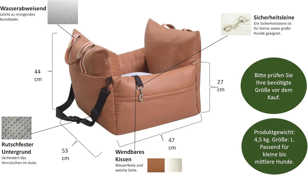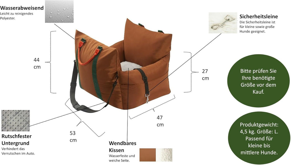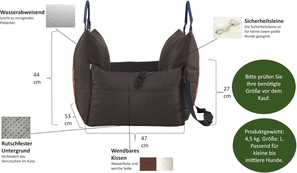 MIM0S Hunde Autositz: Universal-3in-1 Lösung für vordere und hintere Sitze. Geeignet für kleine bis