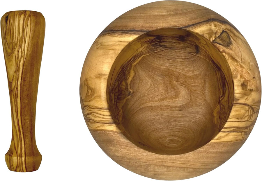 Mörser mit Stössel aus Olivenholz | Handmade in Germany | Küchen Mörser aus Holz für Pfeffer, Kräute