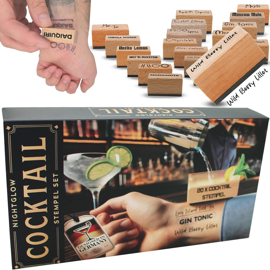 NIGHTGLOW Barkeeper Stempel Set | Cocktail-Bar Deko Cocktail Zubehör - 20 einzigartige Stempel Bar Z