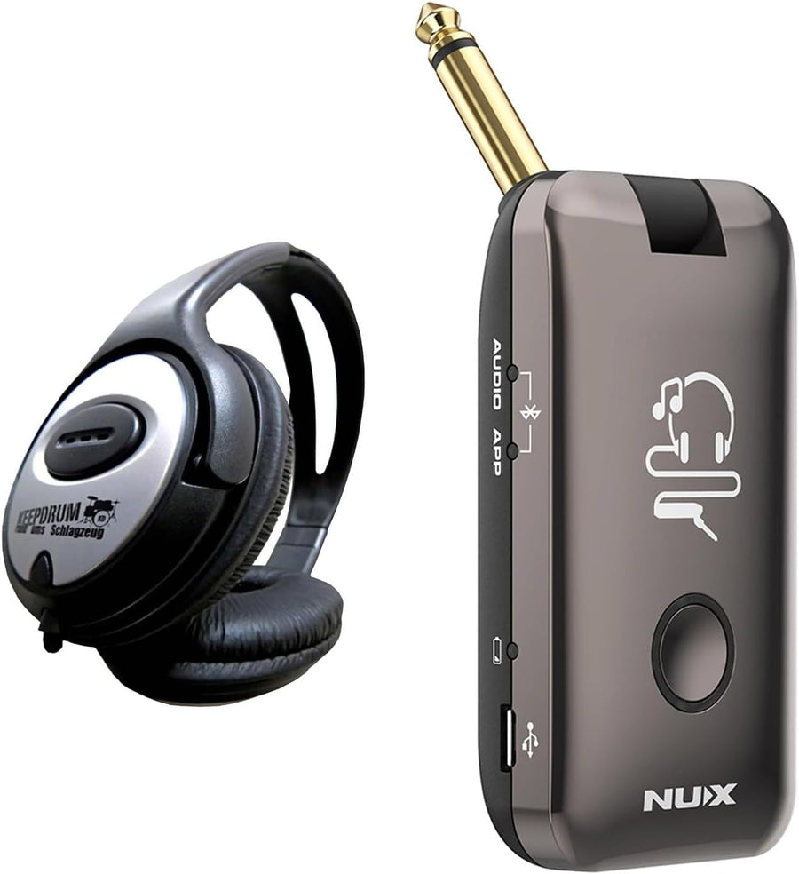 Nux MP-2 Mighty Plug Drahtlose Verstärker- und Effekt-Simulation für Gitarre und Bass + keepdrum Kop