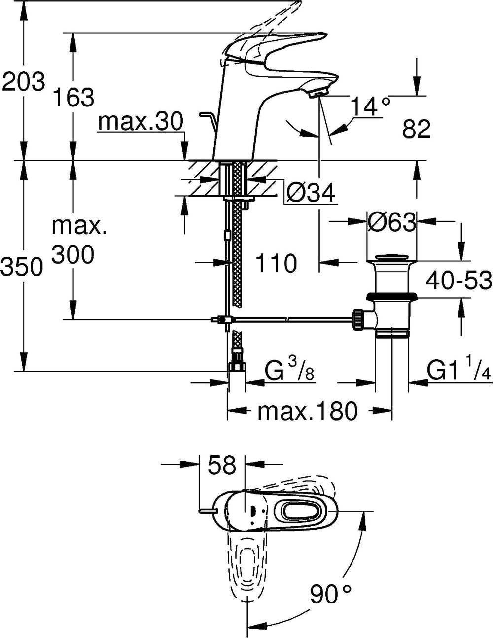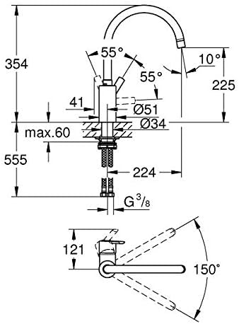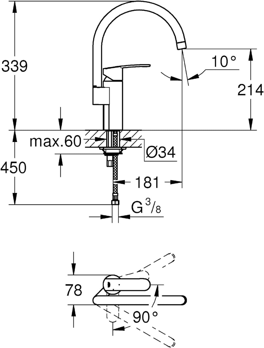 GROHE Feel - Einhand-Spültischbatterie (Schwenkbereich 90°, einstellbare Mengenbegrenzung, verdeckte