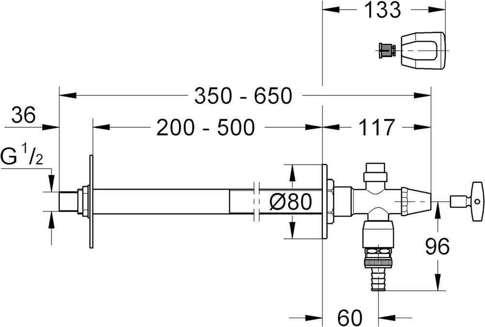 GROHE Eurotec-Bausatz Aussenwandventil (Verdrehschutz, mit Sicherungseinrichtung Typ HD, 170 - 500 m