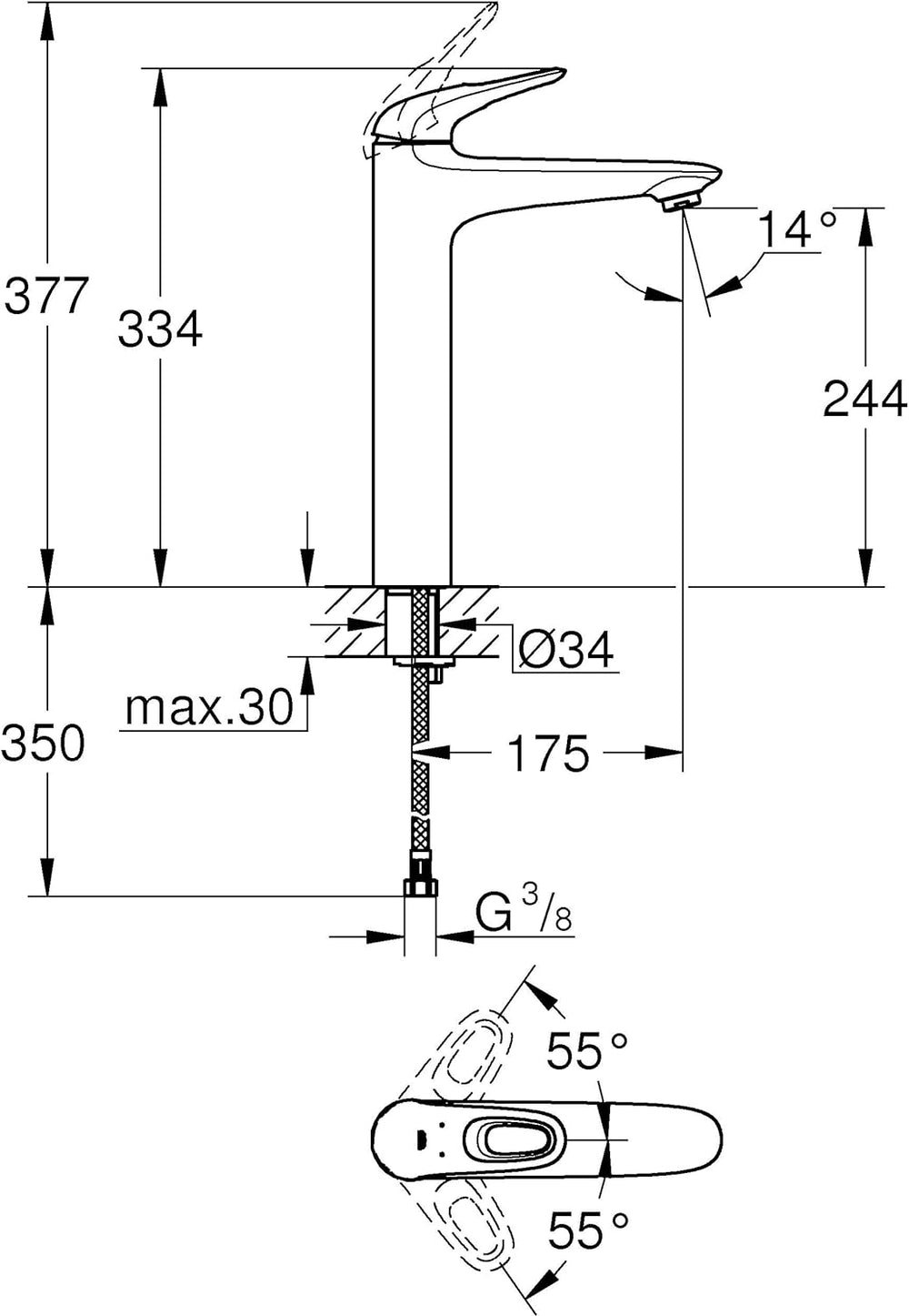 GROHE Feel - Einhand-Waschtischbatterie (S-Size, einstellbare Mengenbegrenzung, Schnellbefestigungss