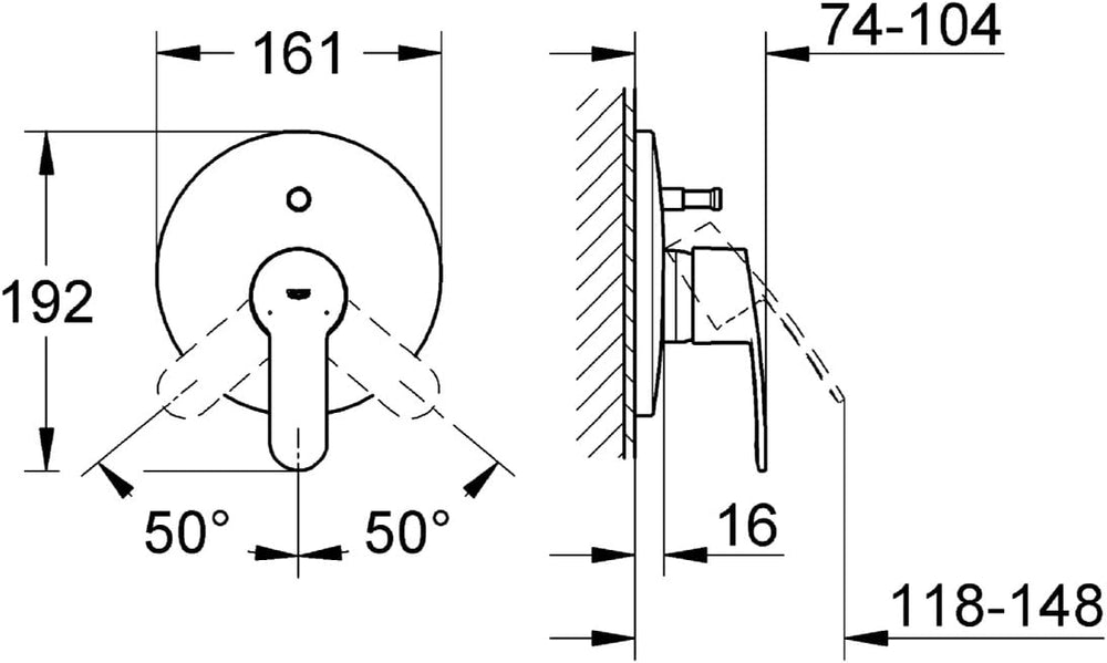 GROHE Eurostyle C Einhand-Wannenbatterie Fertigmontageset für Unterputzkörper (35501000) 19506002, S
