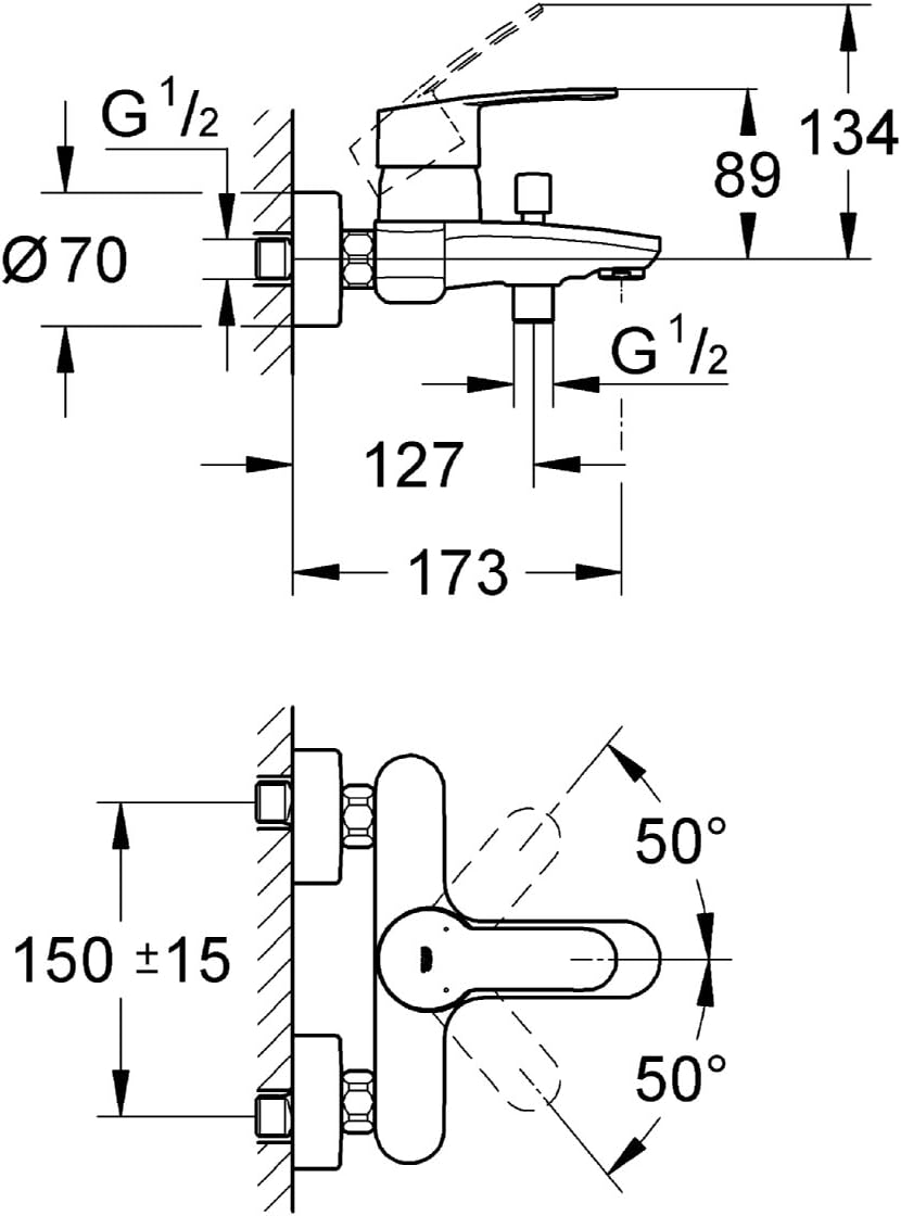 GROHE Eurostyle Cosmopolitan - Einhand-Wannenbatterie (langlebige Oberfläche, für die Wandmontage, S