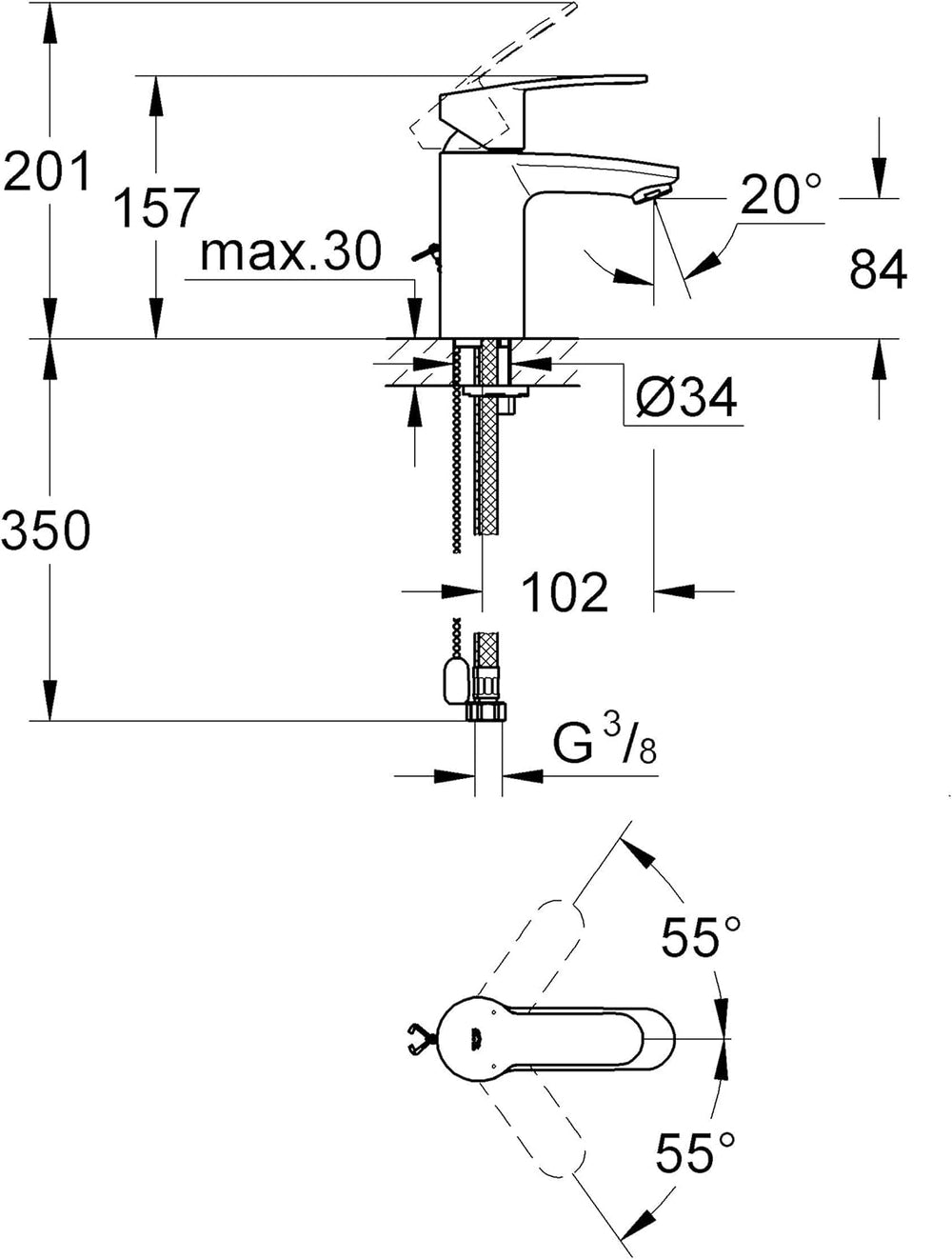 GROHE Eurostyle C Einhand-Waschtischbatterie , Kette statt Zugstange , reduzierter Wasserverbrauch 3