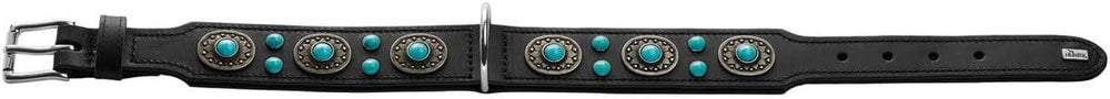HUNTER SIOUX Hundehalsband, Leder, indianischer Stil, mit Schmucksteinen, 55 (M), schwarz schwarz 55