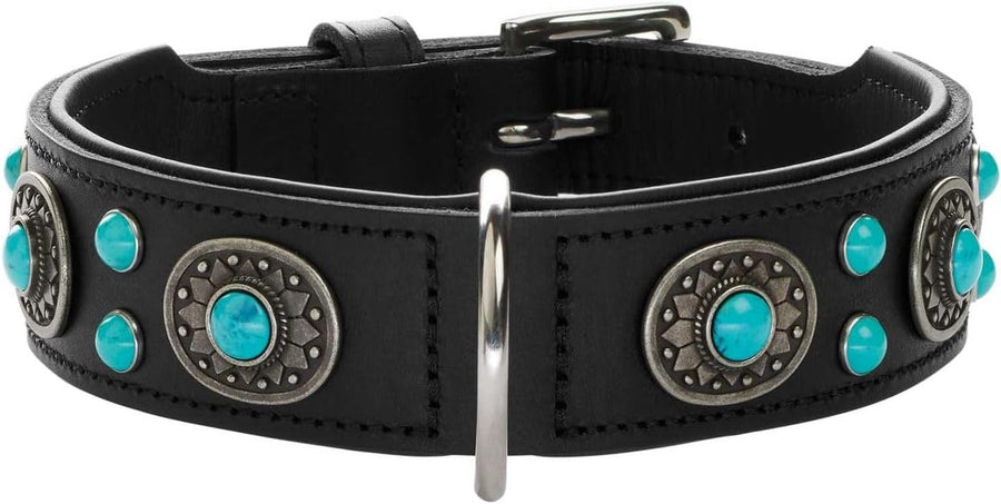 HUNTER SIOUX Hundehalsband, Leder, indianischer Stil, mit Schmucksteinen, 50 (S-M), schwarz schwarz