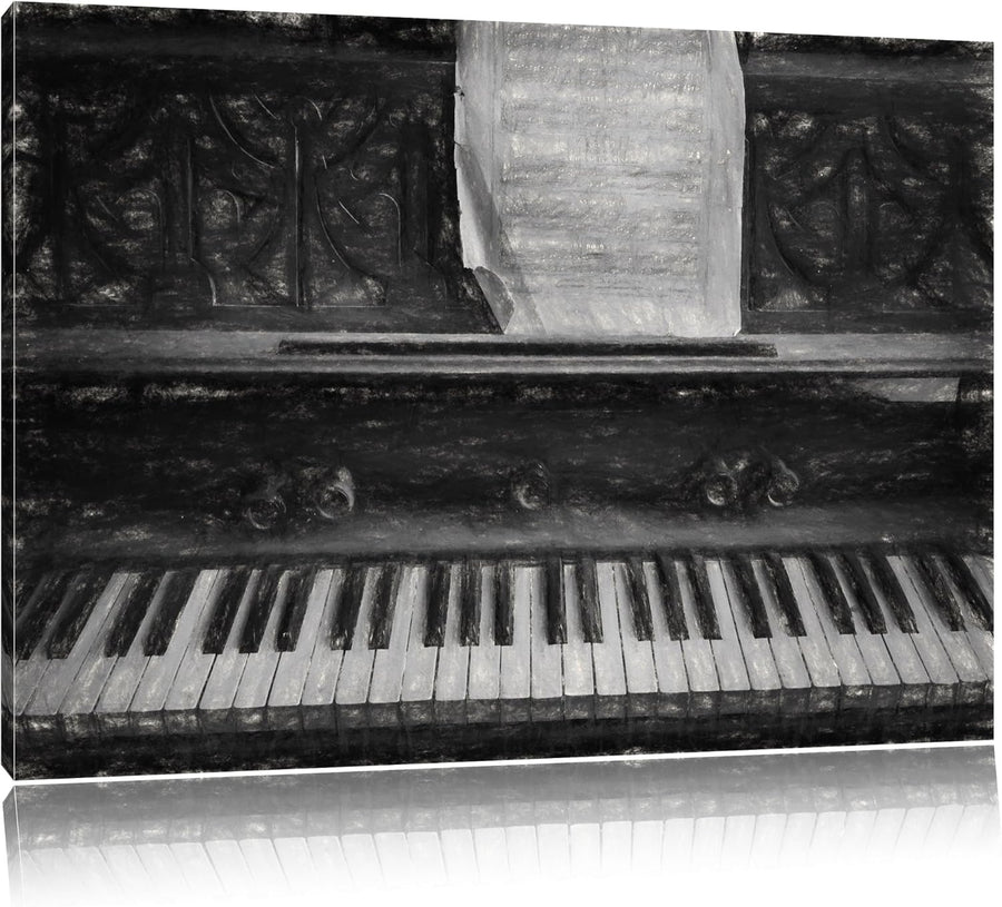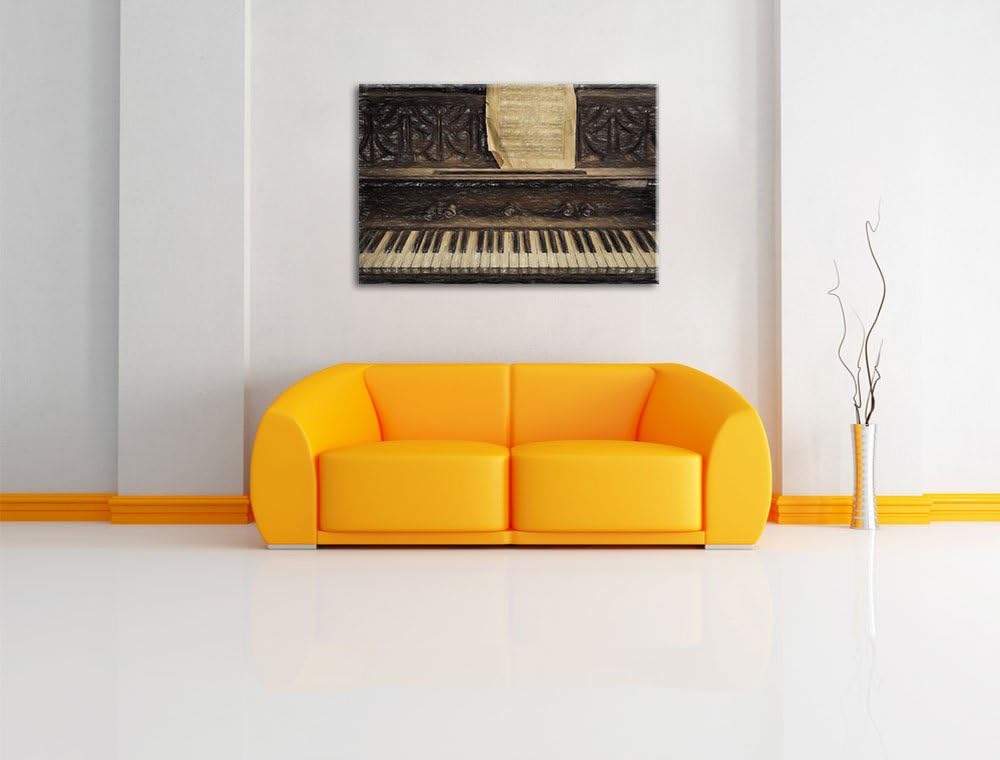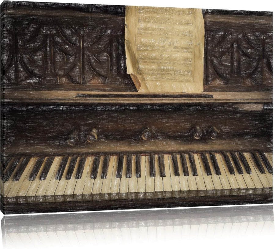 Pixxprint Klavier mit Notenblätter / 100x70cm Leinwandbild bespannt auf Holzrahmen/Wandbild Kunstdru
