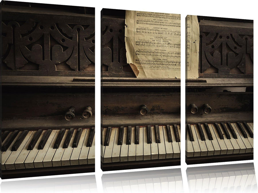 Pixxprint Klavier mit Notenblatt als Leinwandbild | Grösse: 3 Teilig (120x80) | Wandbild| Kunstdruck
