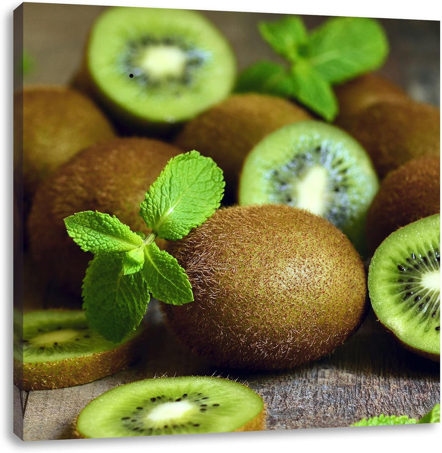 Pixxprint Kiwis auf Holztisch als Leinwandbild | Grösse: 70x70 cm | Wandbild | Kunstdruck | fertig b