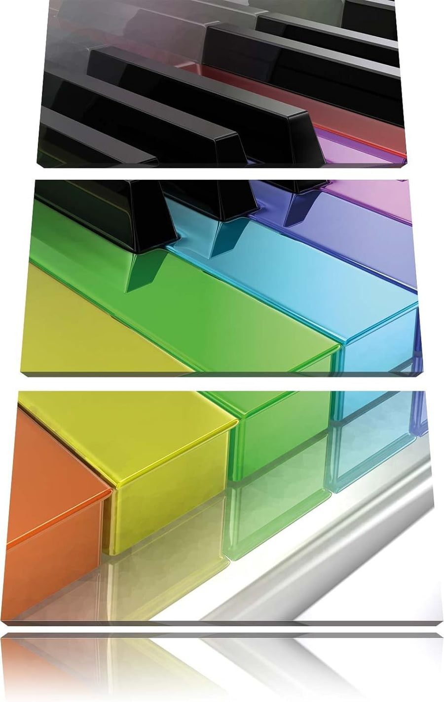 Pixxprint Klavier Tasten / 3-Teilig/Gesamtmass 120cm Leinwandbild bespannt auf Holzrahmen/Wandbild K