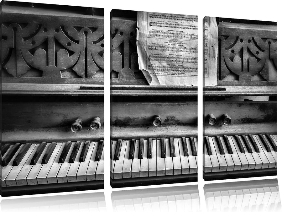 Pixxprint Klavier mit Notenblatt als Leinwandbild/Grösse: 3 Teilig (120x80) cm/Wandbild/Kunstdruck/f