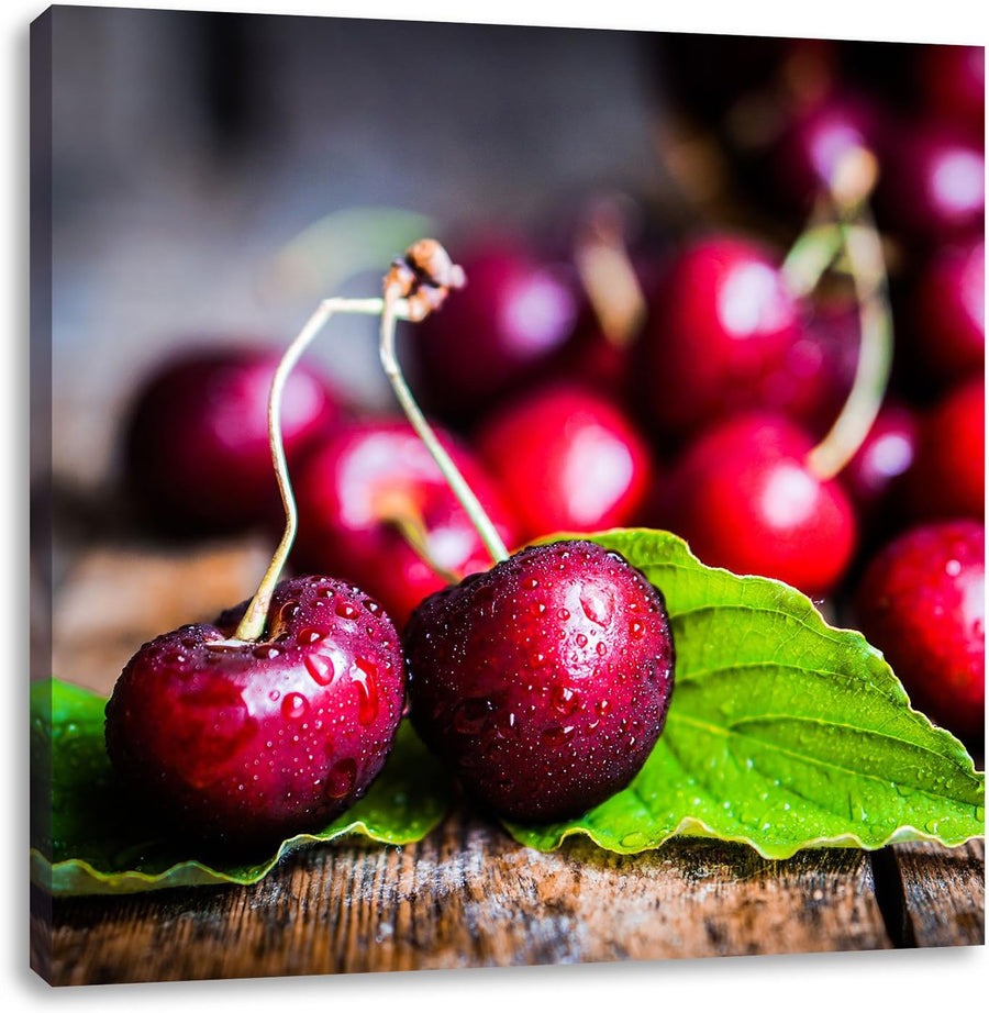 Pixxprint Kirschen, Format: 70x70 auf Leinwand, XXL riesige Bilder fertig gerahmt mit Keilrahmen, Ku