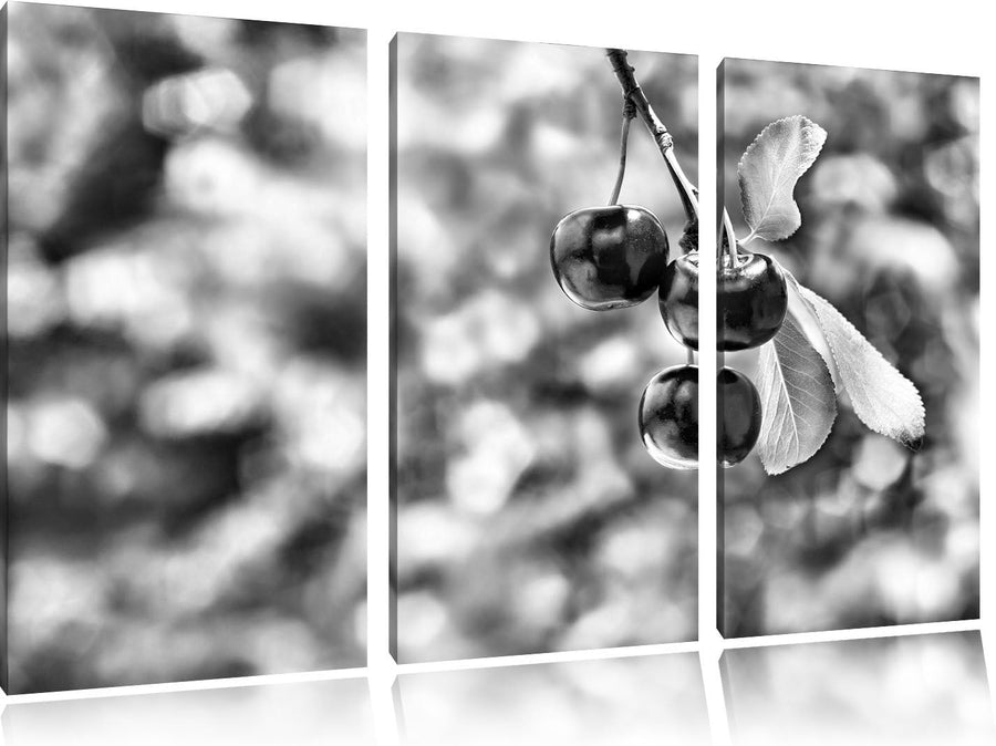 Pixxprint Kirschen als Leinwandbild/Grösse: 3 Teilig (120x80) cm/Wandbild/Kunstdruck/fertig bespannt
