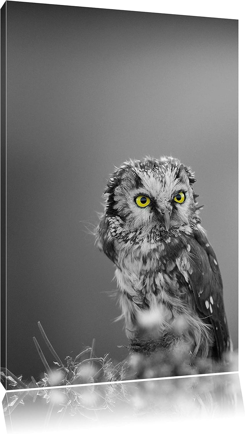 Pixxprint Kleine neugierige Eule schwarz/weiss als Leinwandbild/Grösse: 100x70 cm/Wandbild/Kunstdruc