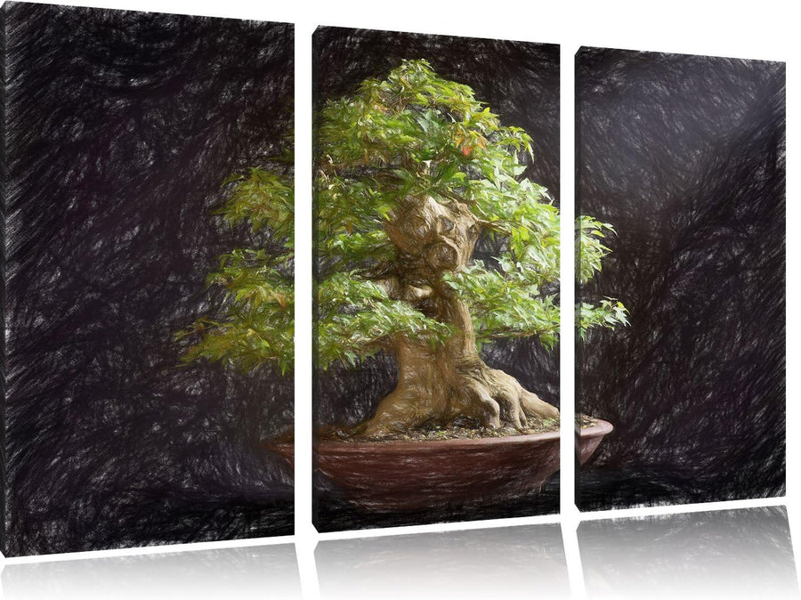 Pixxprint Kleiner Bonsaibaum Bunstift Effekt 3-Teiler Leinwandbild 120x80 Bild auf Leinwand