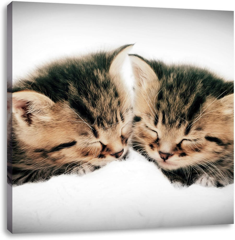 Pixxprint Kleine Süsse Kätzchen kuscheln / 70x70cm Leinwandbild bespannt auf Holzrahmen/Wandbild Kun