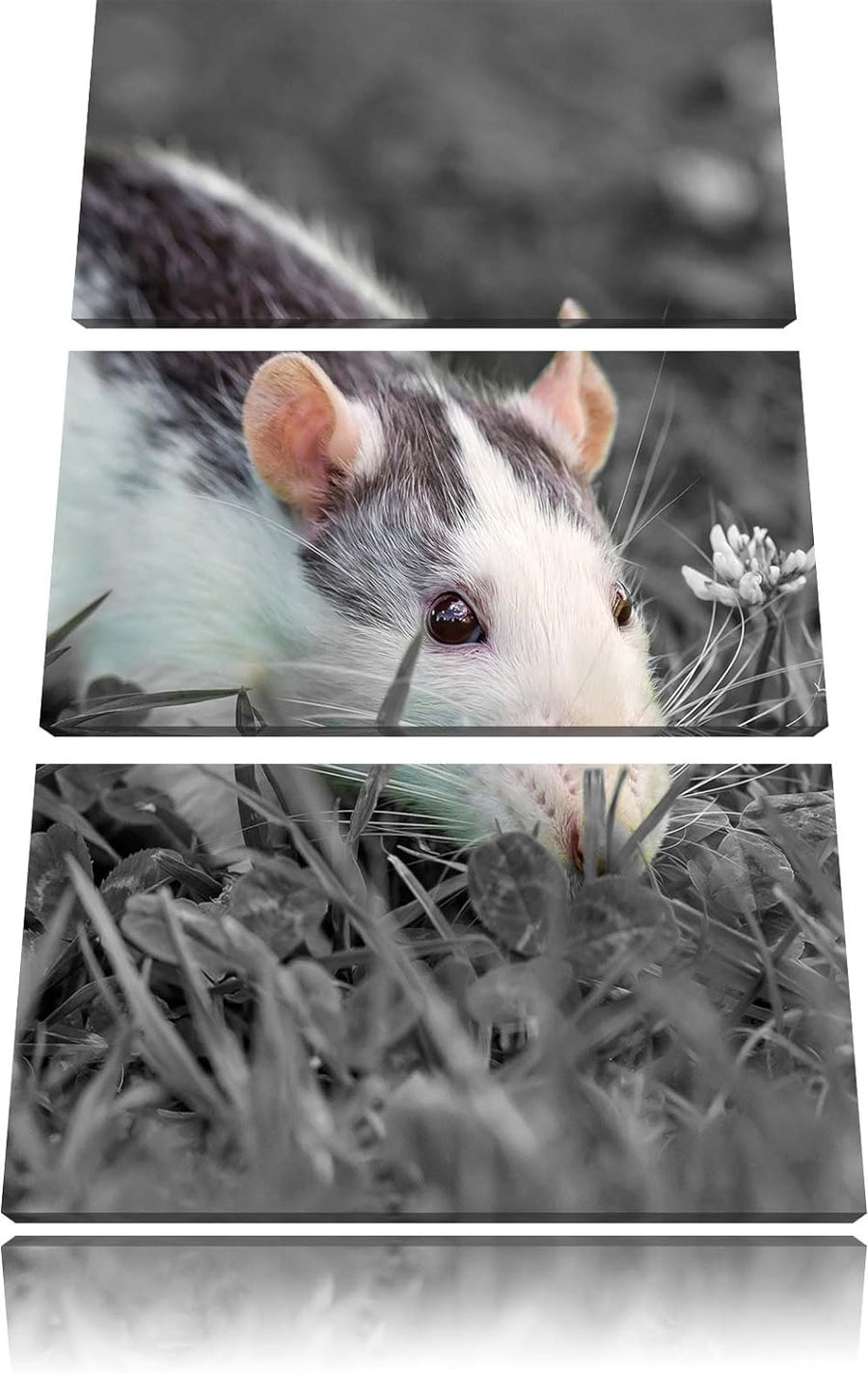 Pixxprint kleine Maus auf Blumenwiese als Leinwandbild/Grösse: 3 Teilig (120x80) cm/Wandbild/Kunstdr