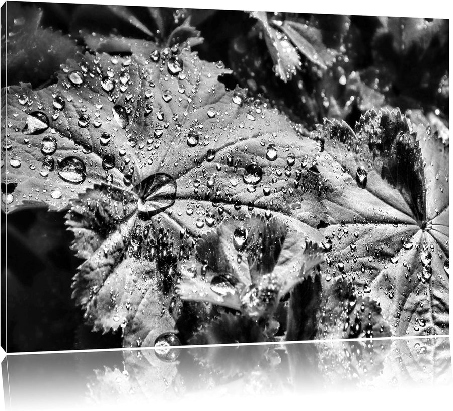 Pixxprint kleine Tropfen auf Blatt als Leinwandbild/Grösse: 100x70 / Wandbild/Kunstdruck/fertig besp
