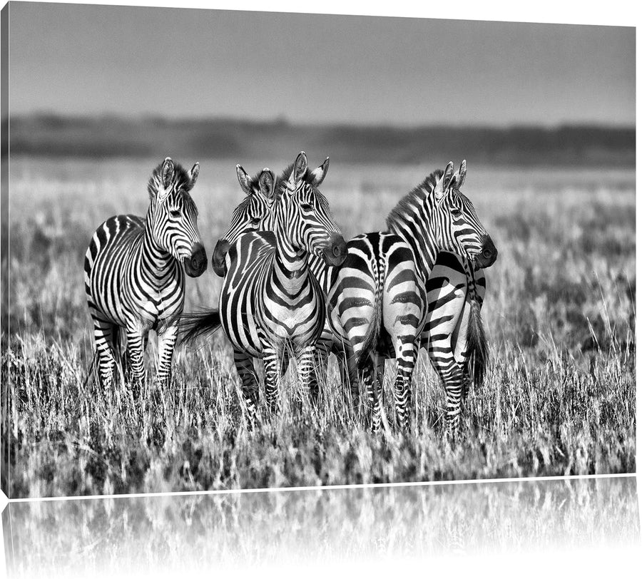 Pixxprint kleine Zebrahorde als Leinwandbild/Grösse: 100x70 cm/Wandbild/Kunstdruck/fertig bespannt,