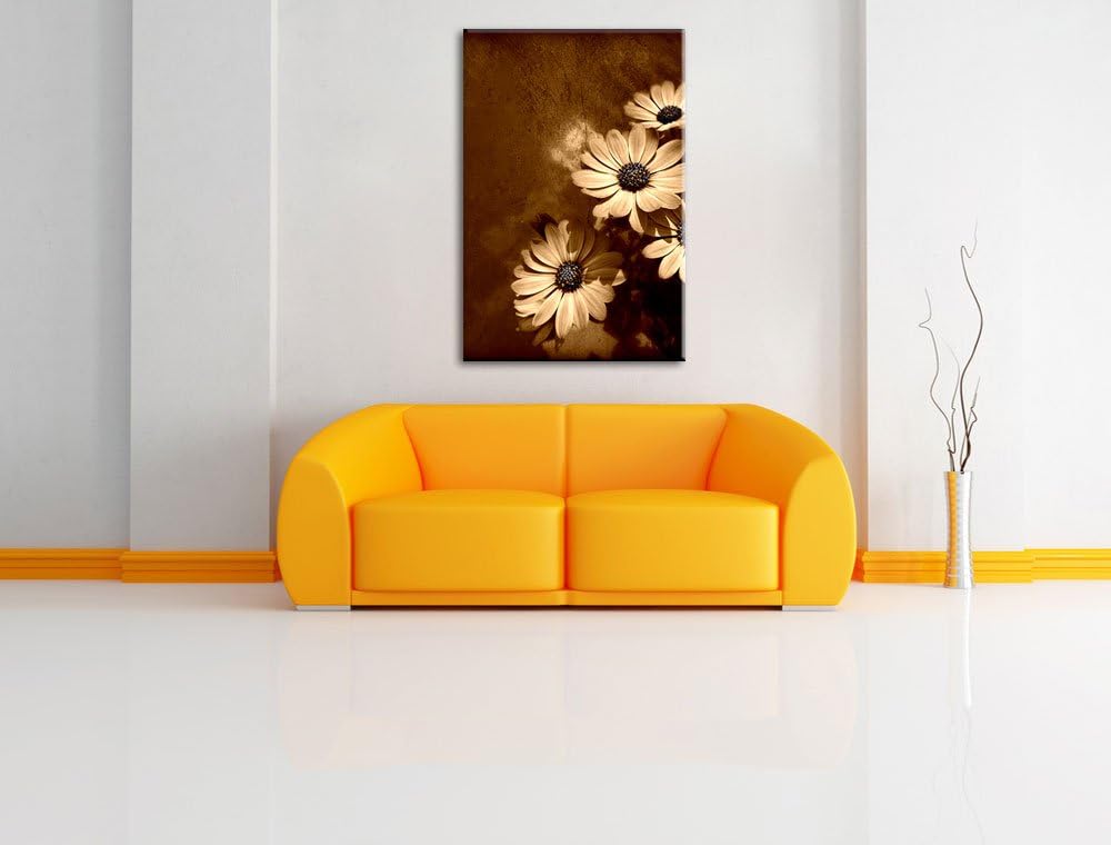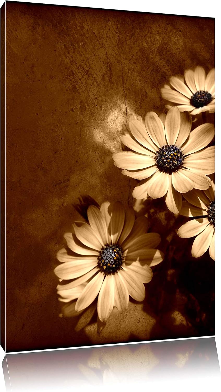 Pixxprint kleine Margareten an Hauswand auf Leinwand, XXL riesige Bilder fertig gerahmt mit Keilrahm