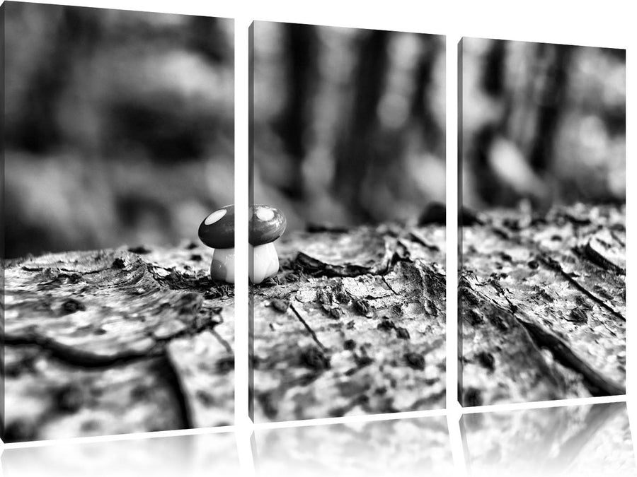 Pixxprint Kleiner Fliegenpilz auf Baumstamm als Leinwandbild/Grösse: 3 Teilig (120x80) / Wandbild/Ku