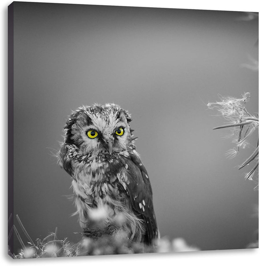 Pixxprint Kleine neugierige Eule schwarz/weiss, Format: 70x70 auf Leinwand, 70x70
