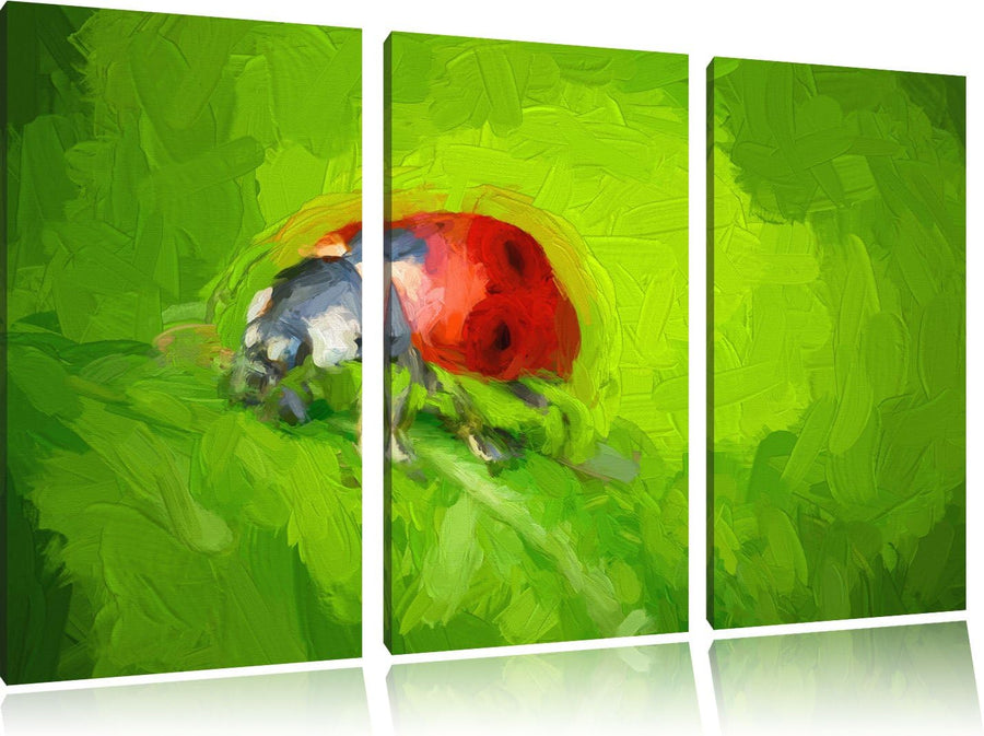 Pixxprint Kleiner Marienkäfer auf Blatt / 3-Teilig/Gesamtmass 120cm Leinwandbild bespannt auf Holzra